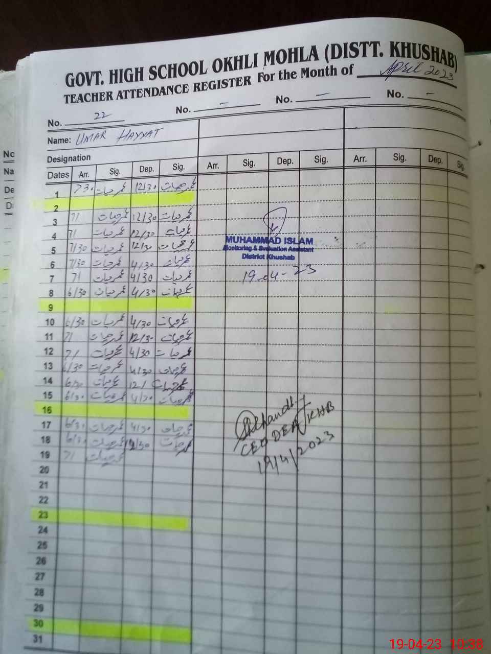 | District: KHUSHAB | Tehsil: QUAIDABAD | Markaz: OKHLI MOHLA (MALE) | Level: High | |