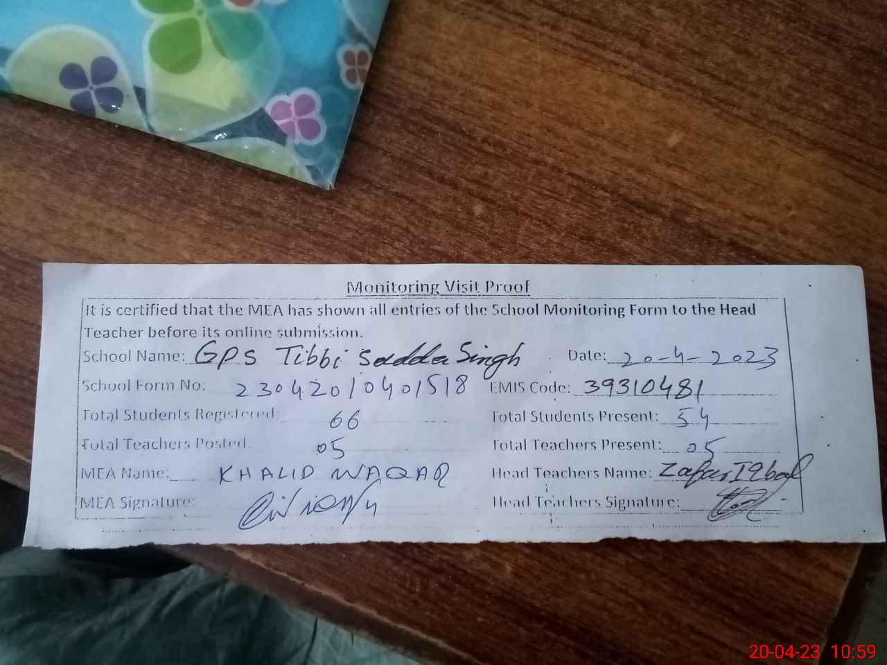 | EMIS Code: 39310481 | Name of School: GPS TIBBI SADA SINGH | |||