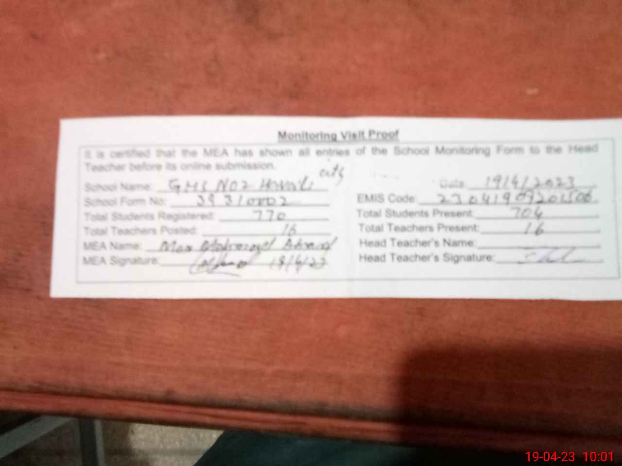 | EMIS Code: 39310002 | Name of School: GHS NO 2 HAVELI | |||