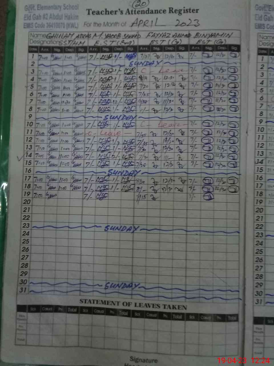 | Leave | Duty | Absent | Maternity | Medical | Ex- Pak |