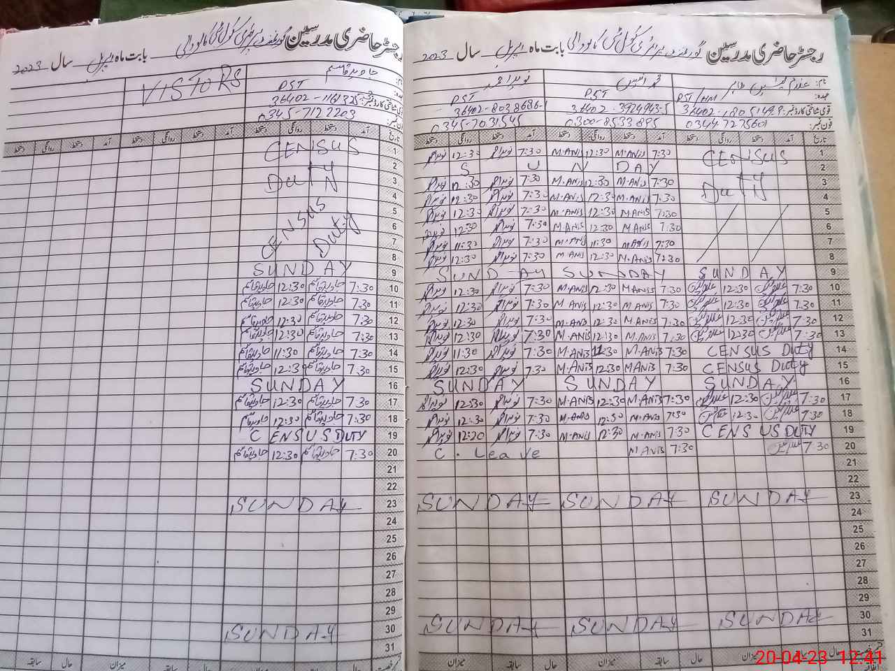 | CNIC | Full Name | Designation | R/C | Absence During Last Calender Month |