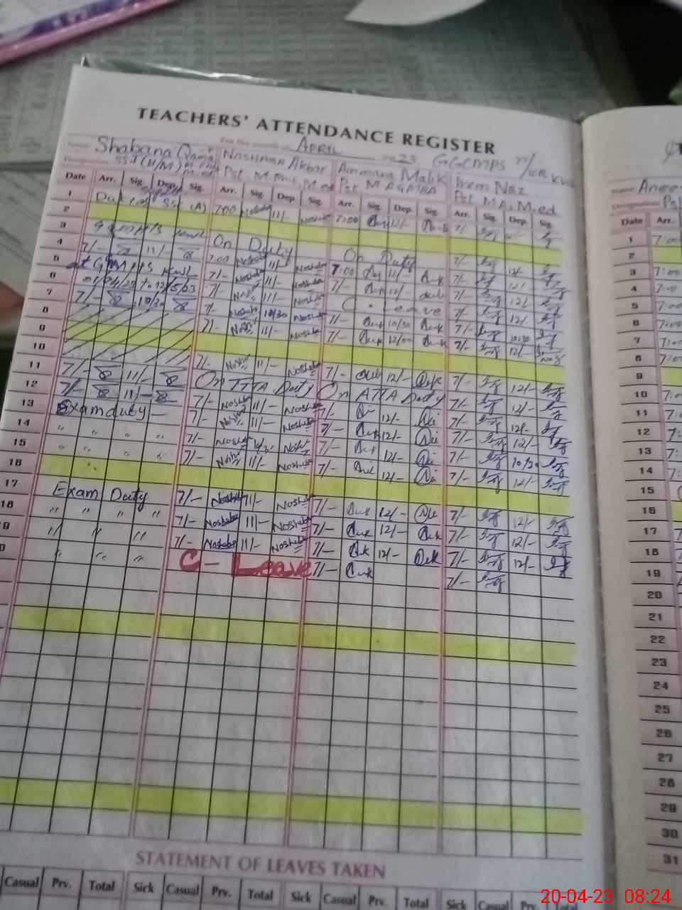 | 36**** | Sh**** Qa**** | Regular | 1 | 2 | 0 | 0 | 0 | 0 | 0 | 0 | 1 | Exam Duty | |