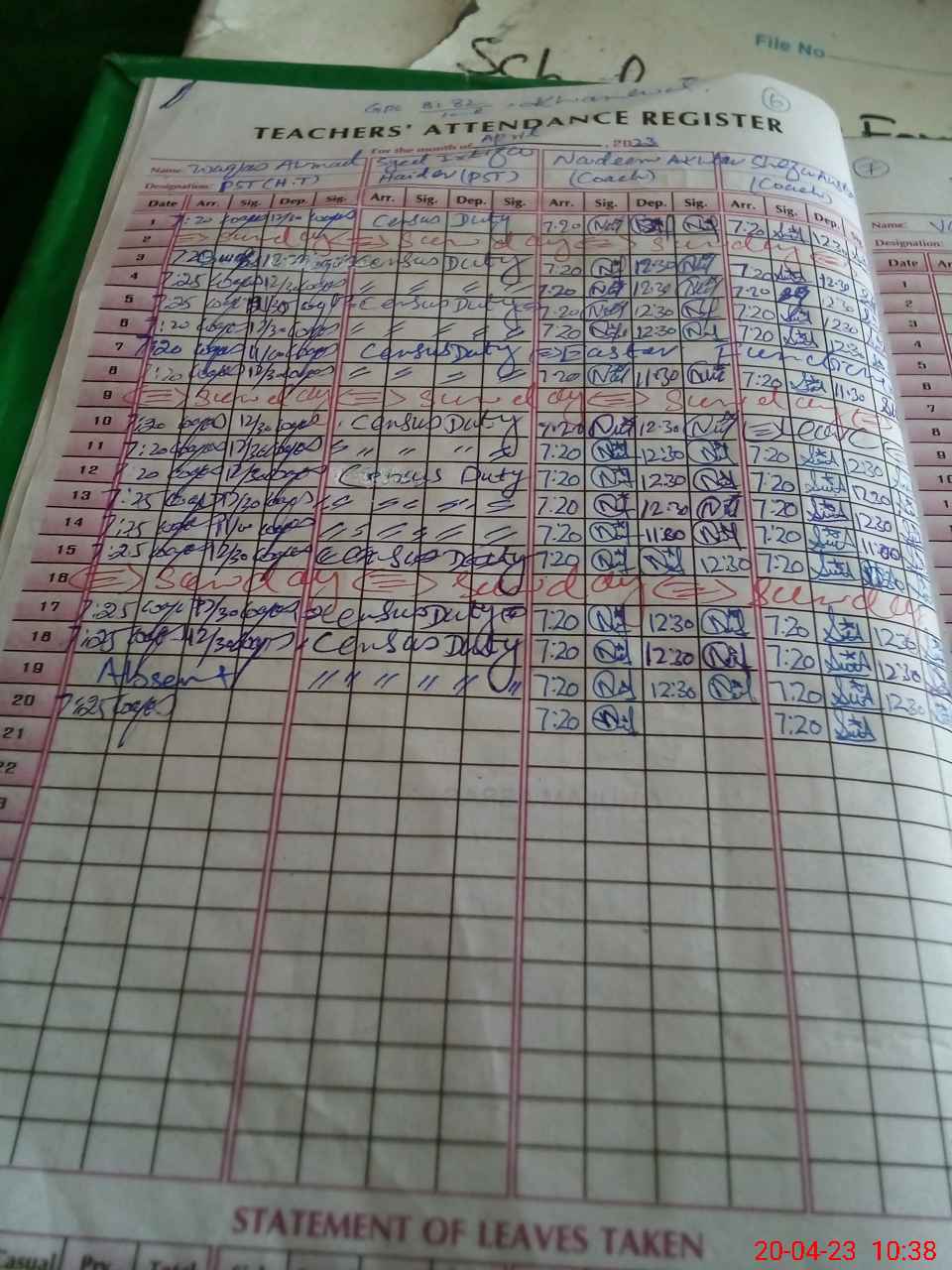 | Remarks (Use Separate Page if Required): AEO NOT VISITED THE SCHOOL IN THE LAST MONTH MARCH 2023 | |||||