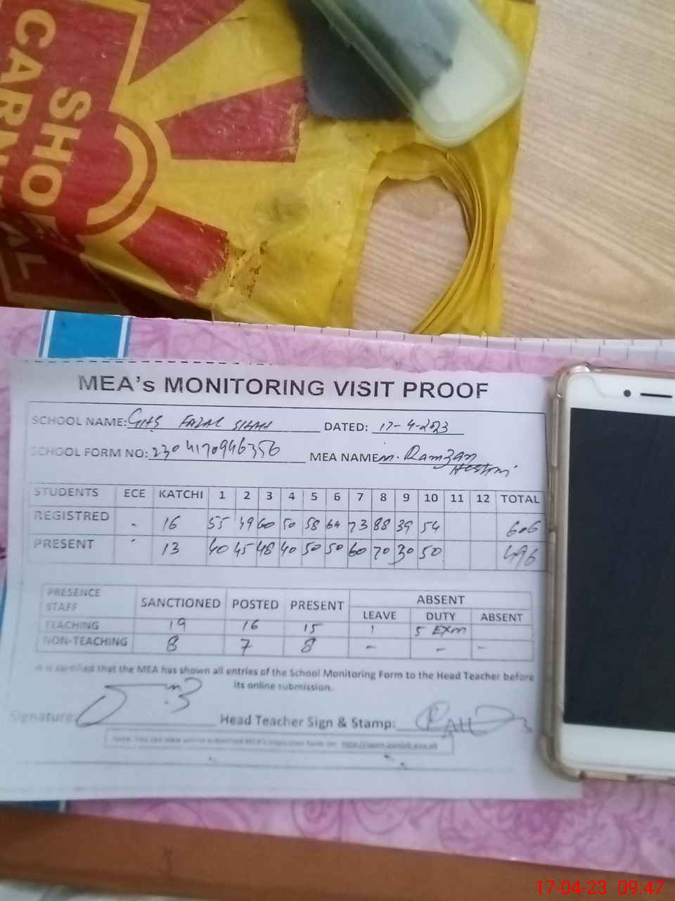| EMIS Code: 36410056 | Name of School: GHS FAZIL SHAH, P/O SARDAR PUR, SARAI SIDHU | |||