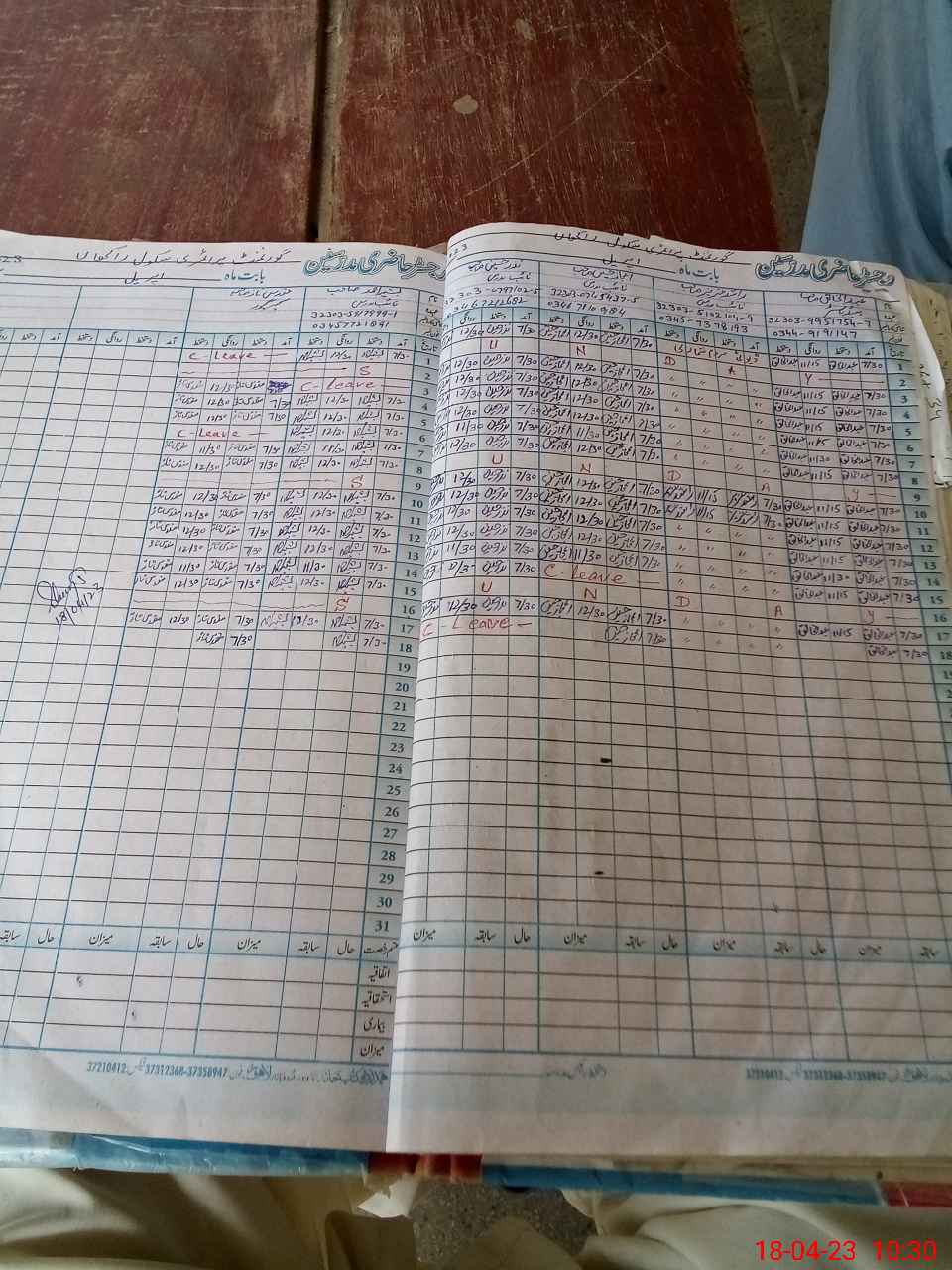 | CNIC | Full Name | Designation | R/C | Absence During Last Calender Month |