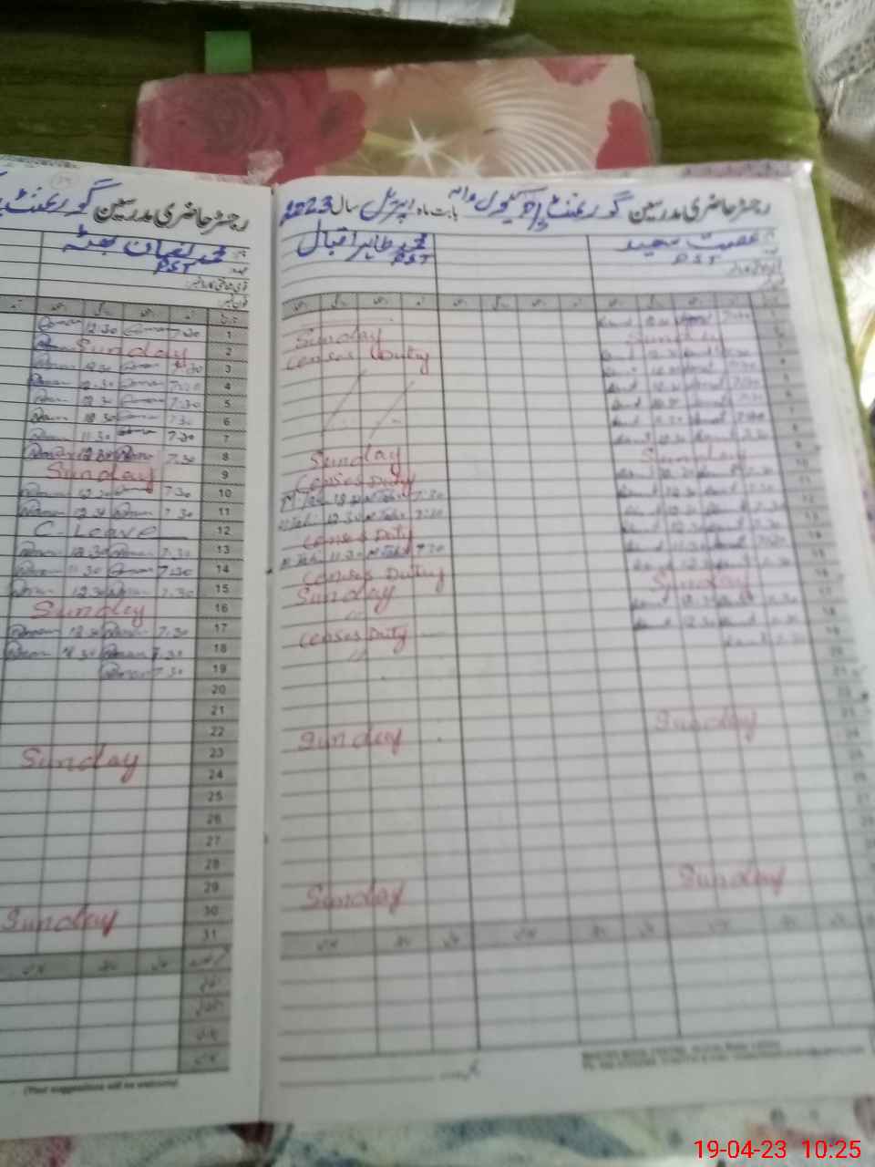 | Leave | Duty | Absent | Maternity | Medical | Ex- Pak |