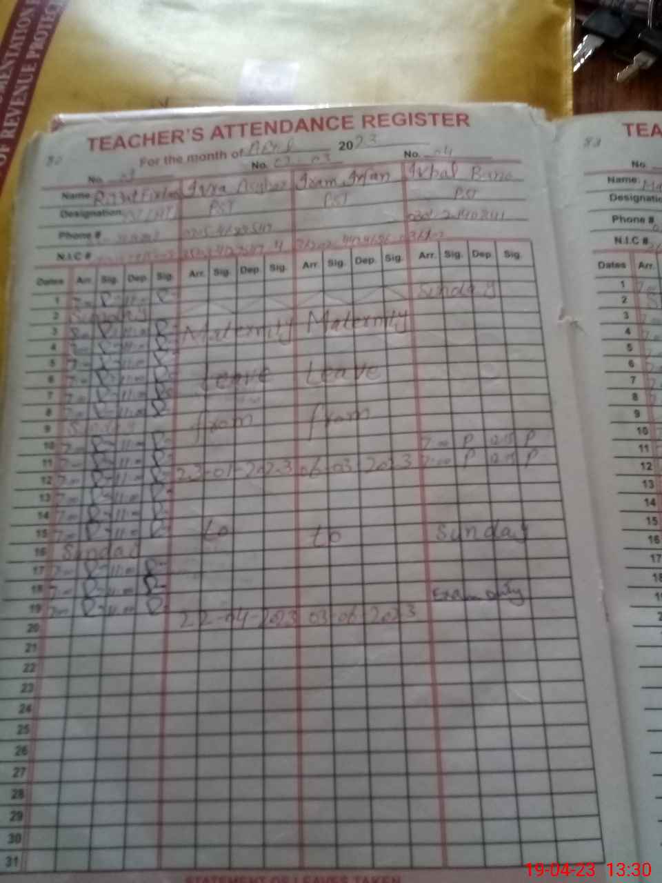 | Name: IQ**** BA**** Designation: (School Headmaster's/Headmistress's) PST Phone/Cell Number: 03**** |