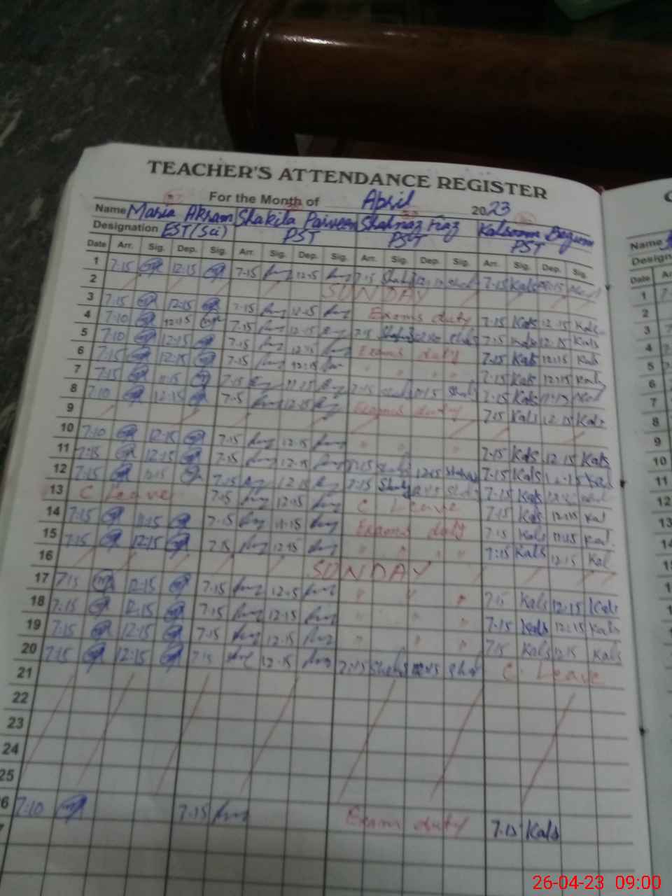 | 36**** | Sh**** Ak**** | PST | Regular | 0 | 0 | 0 | 0 | 0 | 0 | 0 | 0 | 0 | Exam Duty |