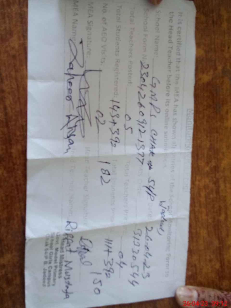 | Certified that this School was Inspected by the Undersigned MEA/DMO Today and the Information Stated Above is as Per Record. | |||||