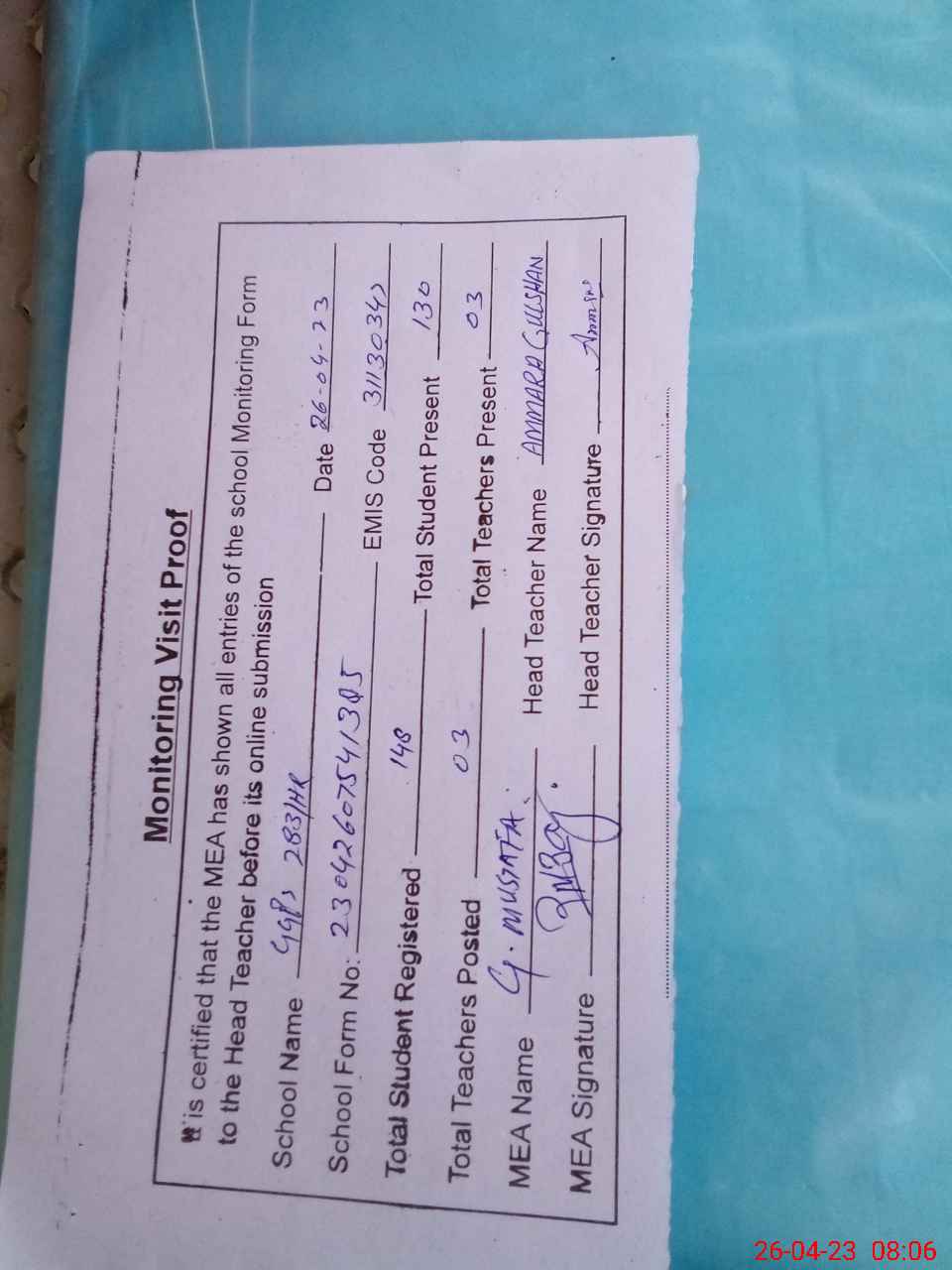 | EMIS Code: 31130347 | Name of School: GGCMPS CHAK NO 283 HR | |||