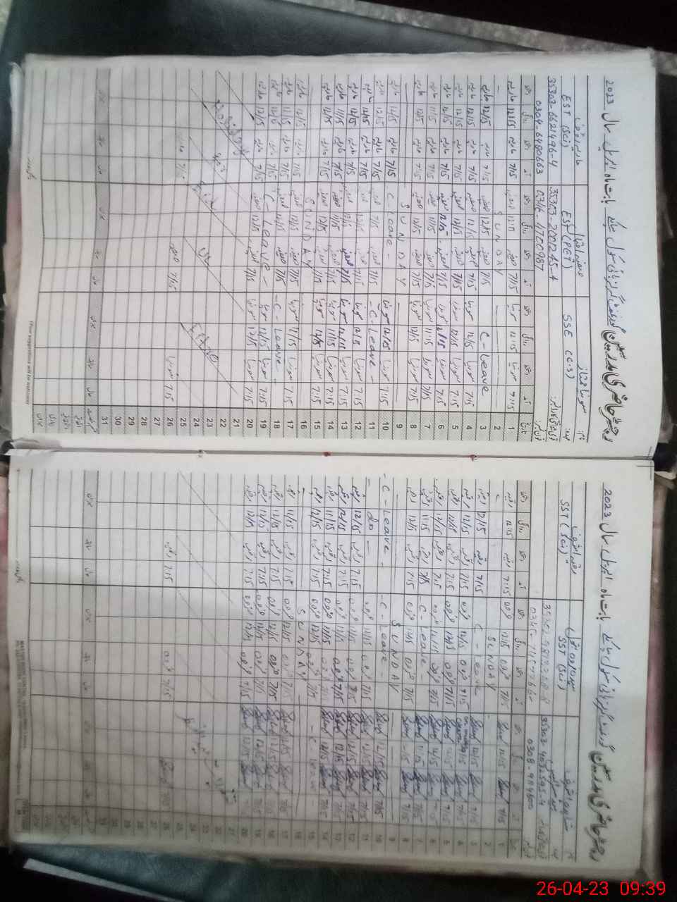 | CNIC | Full Name | Designation | R/C | Absence During Last Calender Month |