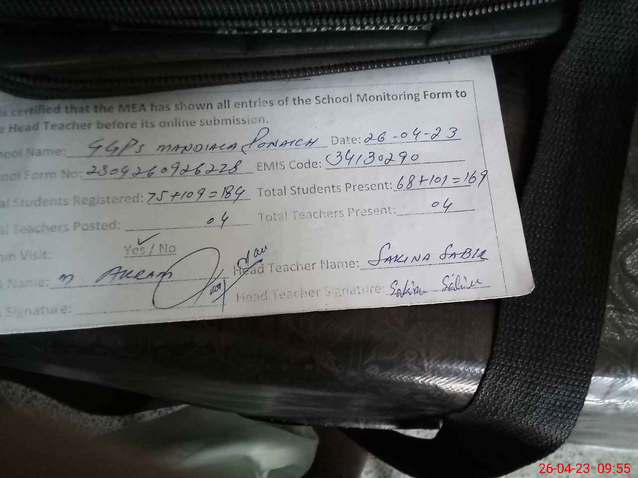 | Attendance Register | Head Teacher | MEA with School | Visit Proof |