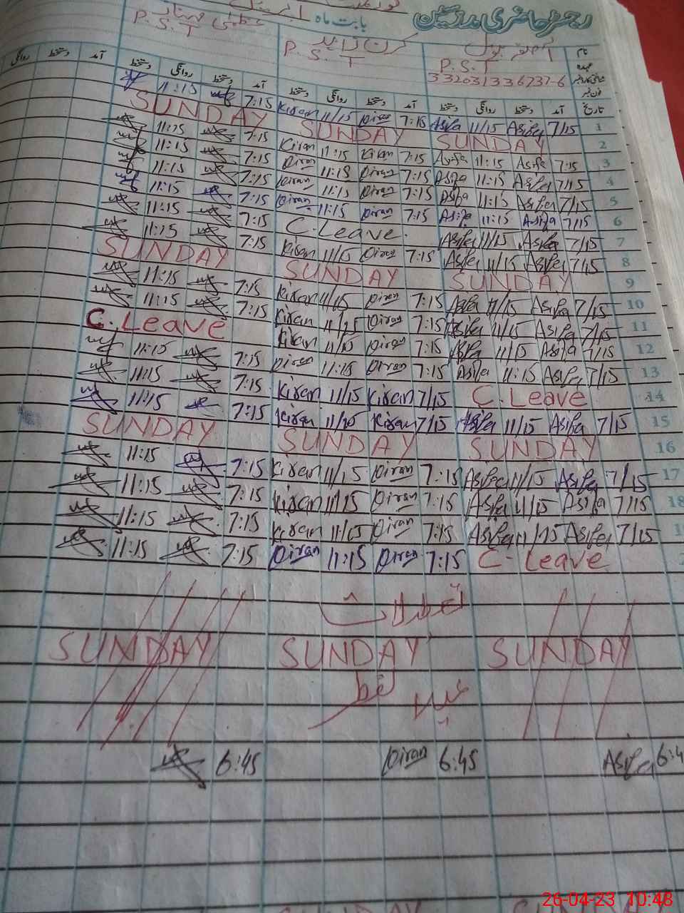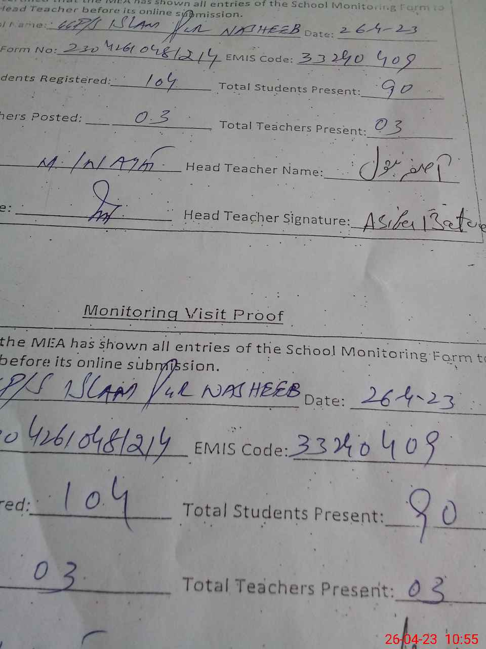| Name: AS**** BA**** Designation: (School Headmaster's/Headmistress's) PST Phone/Cell Number: 03**** |