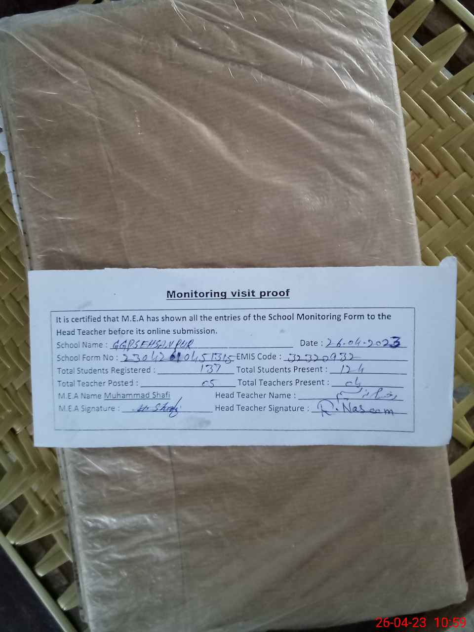 | EMIS Code: 32320932 | Name of School: GGPS EHSAN PUR | |||