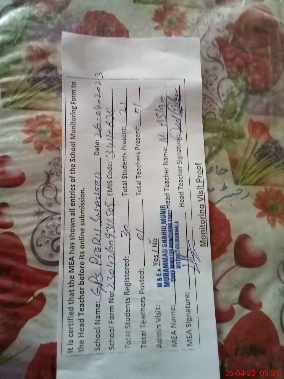 | EMIS Code: 34110638 | Name of School: GPS PEERU SHAHEED | |||