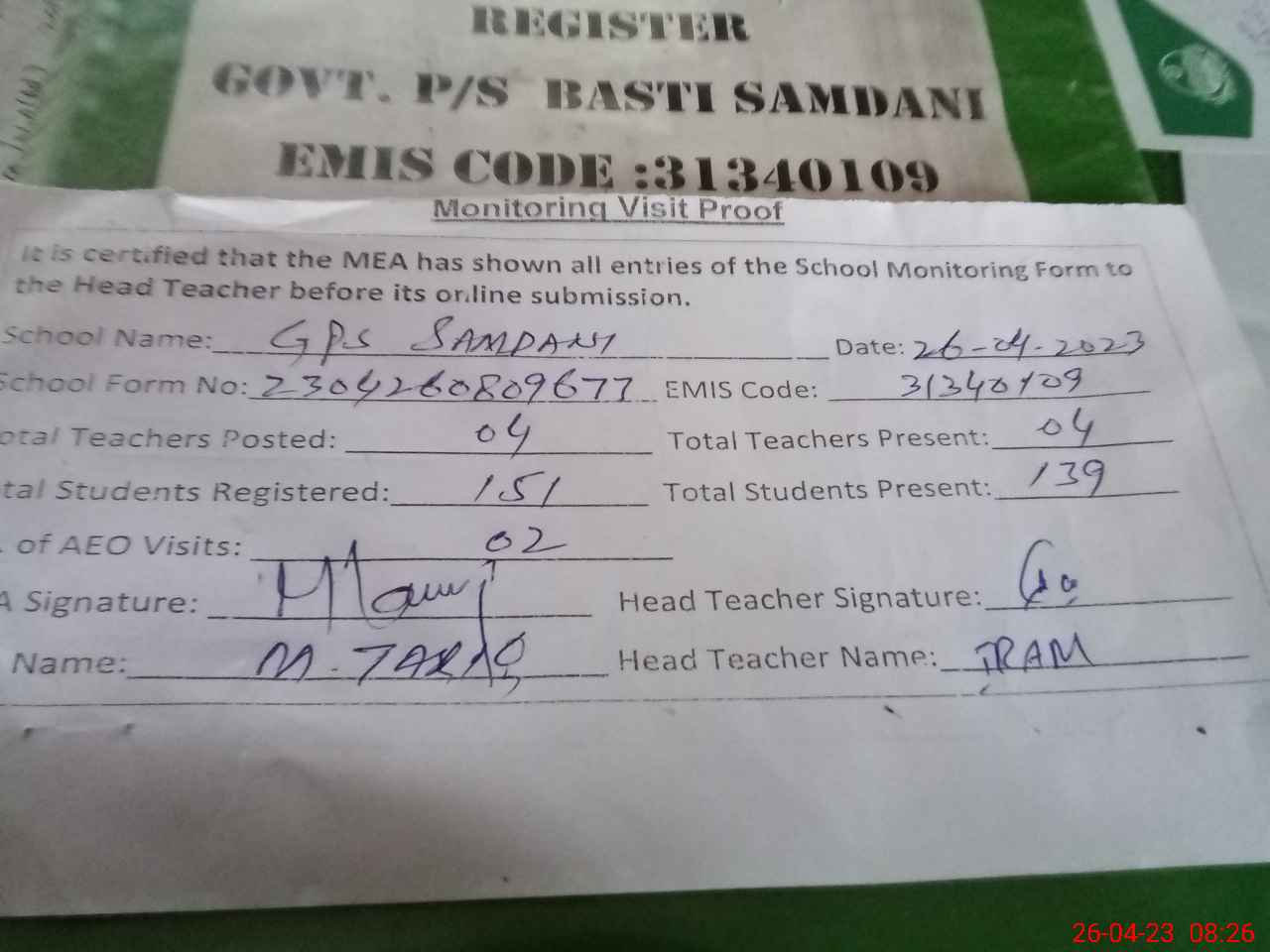 | EMIS Code: 31340109 | Name of School: GPS SAMDANEE | |||