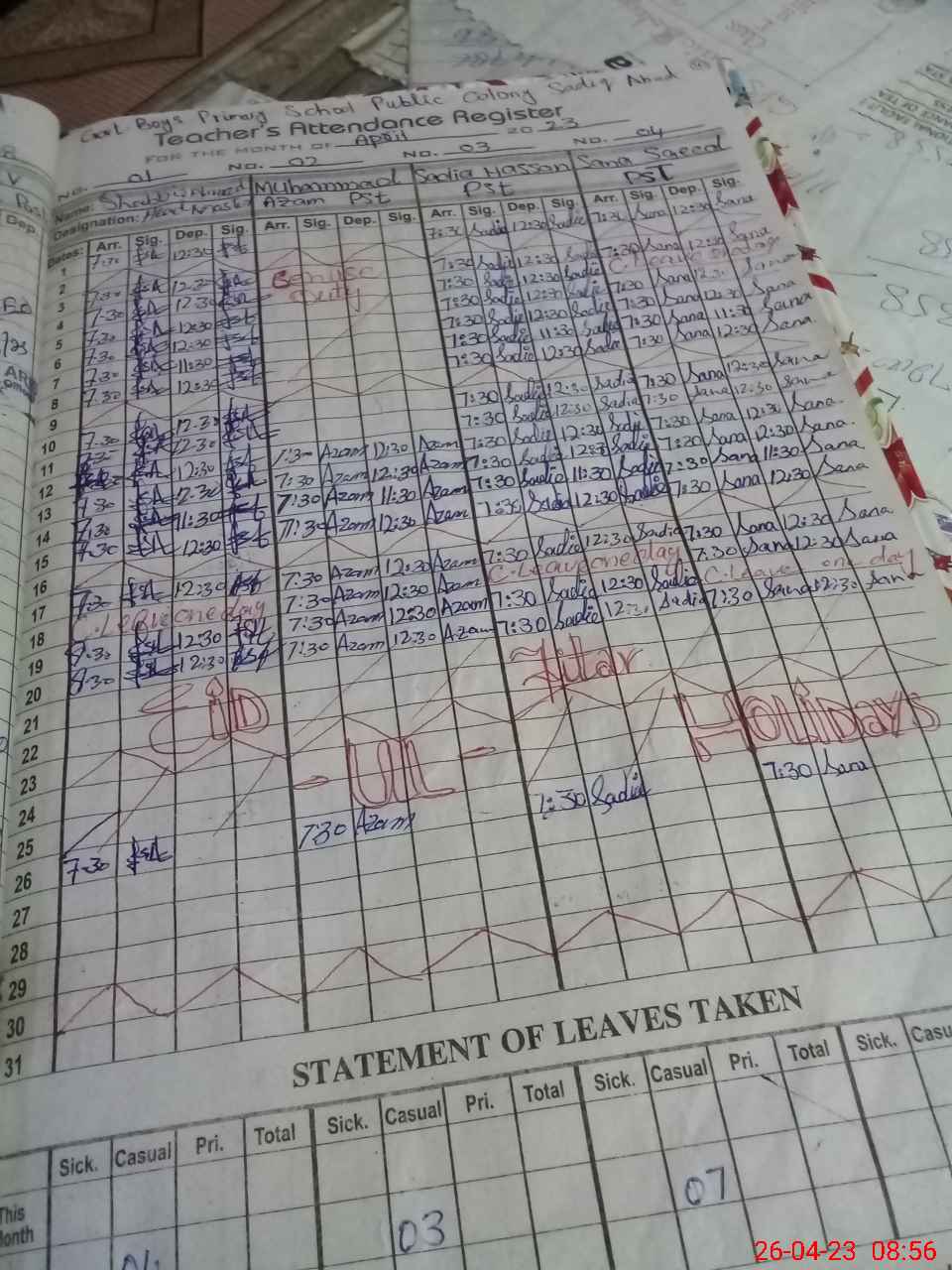 | Leave | Duty | Absent | Maternity | Medical | Ex- Pak |