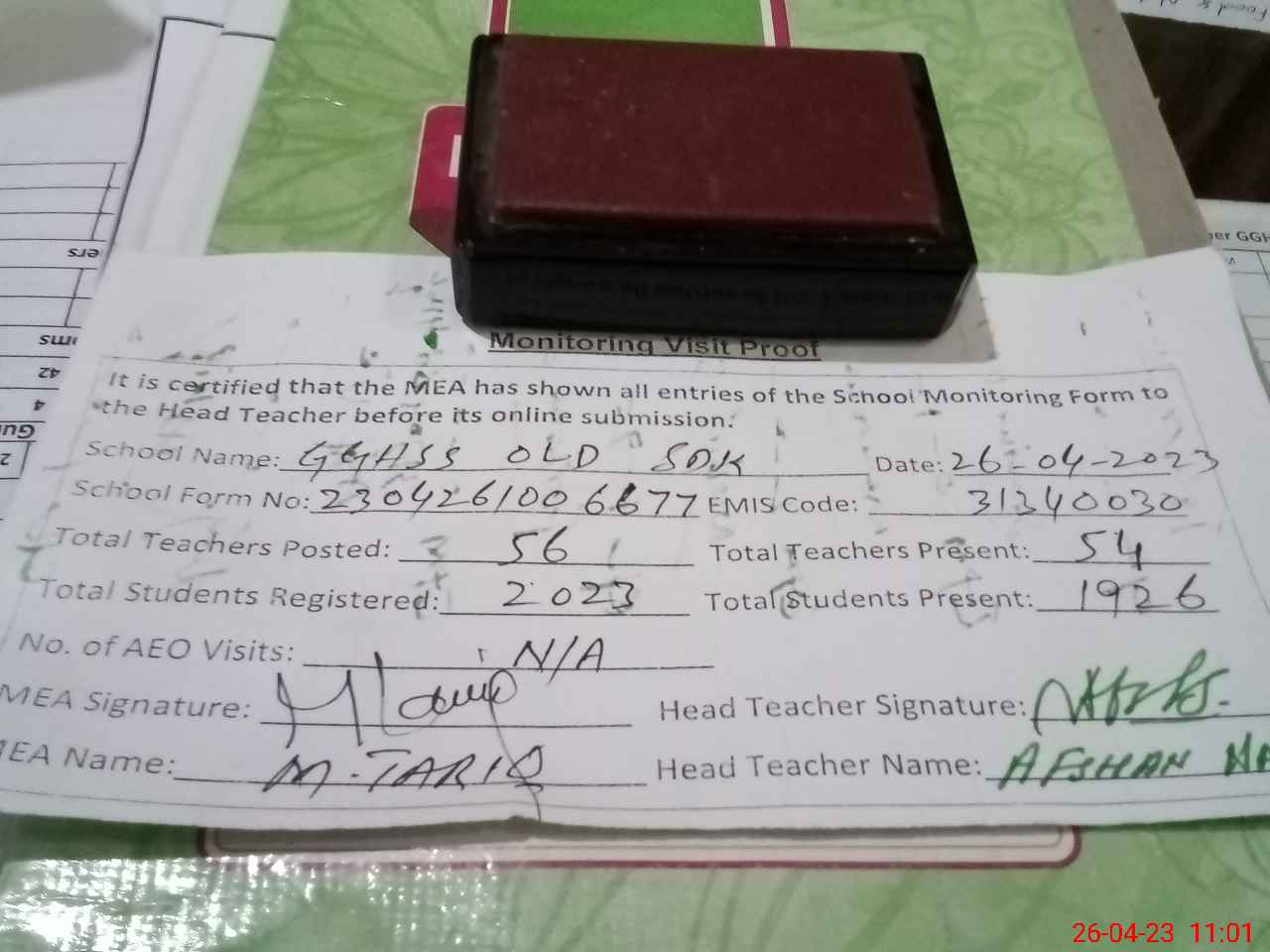 | EMIS Code: 31340030 | Name of School: GGHSS OLD | |||