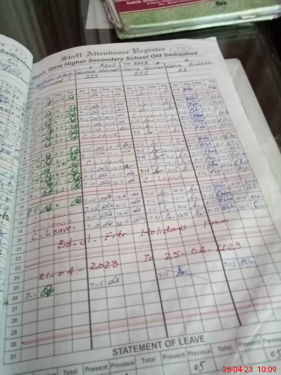 | Leave | Duty | Absent | Maternity | Medical | Ex- Pak |