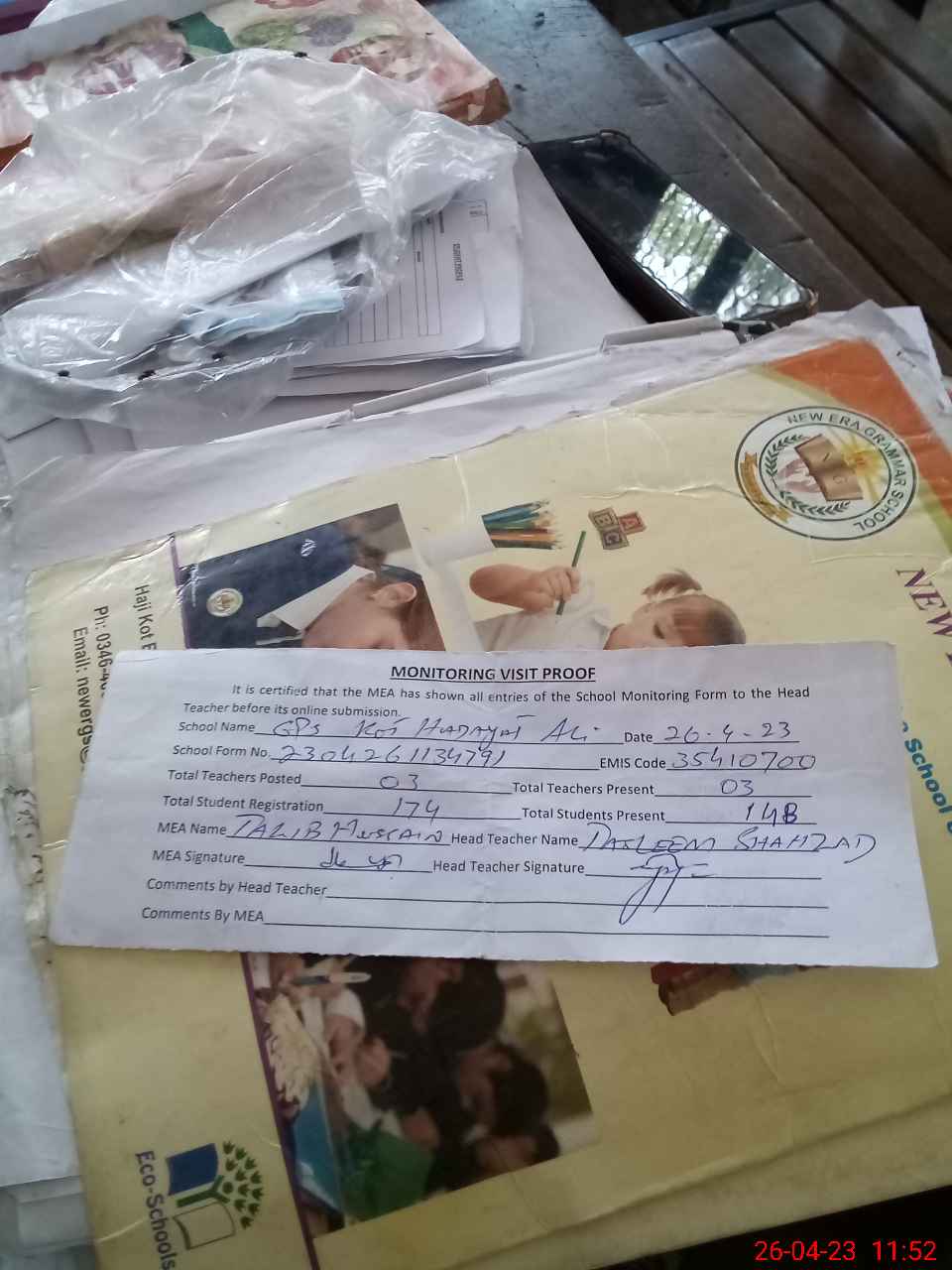 | Attendance Register | Head Teacher | MEA with School | Visit Proof |