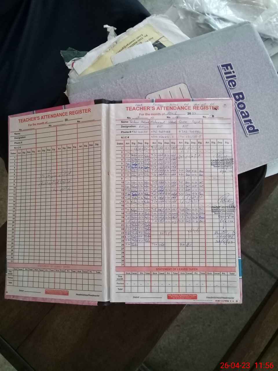 | Name: TA**** SH**** Designation: (School Headmaster's/Headmistress's) ESE ARTS Phone/Cell Number: 03**** |
