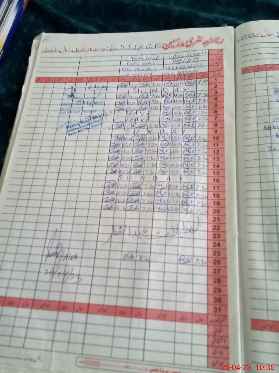 | Name: Zi**** Ul**** Kh**** Designation: (School Headmaster's/Headmistress's) PST Phone/Cell Number: 03**** |