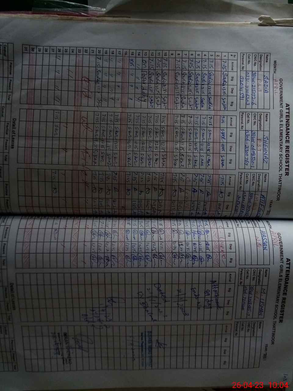 | 38**** | Ru**** Pe**** | SST | Regular | 0 | 0 | 0 | 0 | 0 | 0 | 0 | 0 | 0 | Exam Duty |