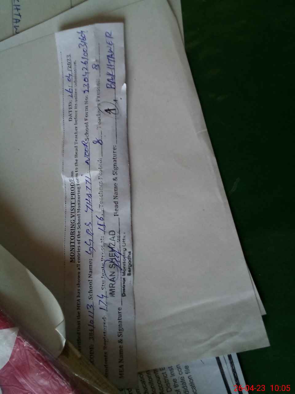 | Monitoring Date: 26-04-2023 | Start Time: 26-04-2023 09:34 AM | End Time: 26-04-2023 10:06 AM | Name of MEA: IM**** SH**** | |