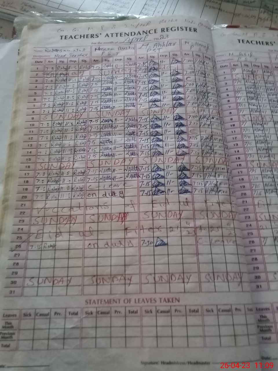 | 36**** | Na**** Ak**** | PST | Regular | 2 | 0 | 0 | 0 | 0 | 0 | 0 | 0 | 2 | Exam Duty |