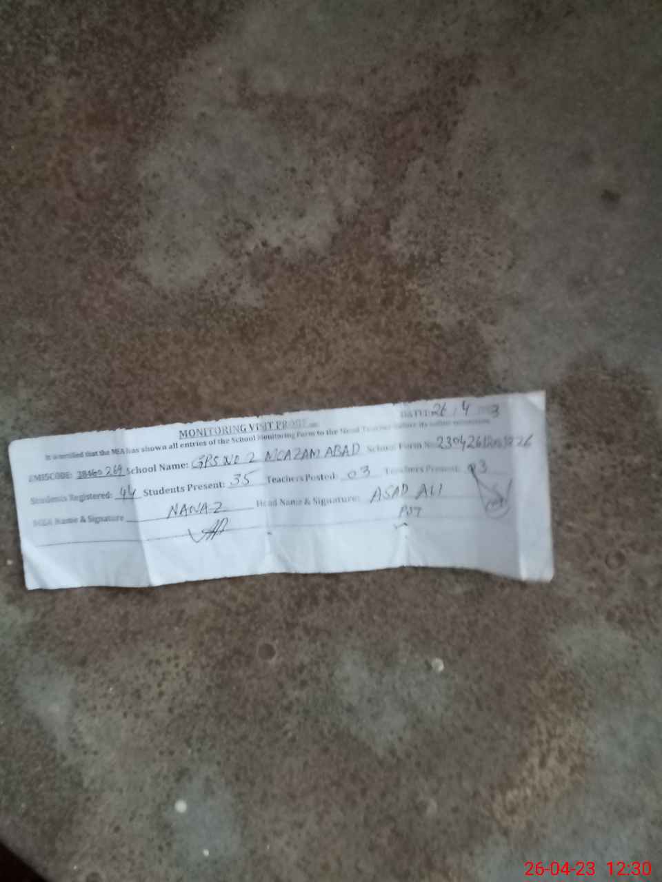 | EMIS Code: 38460269 | Name of School: GPS NO.2 MOAZAM ABAD | |||