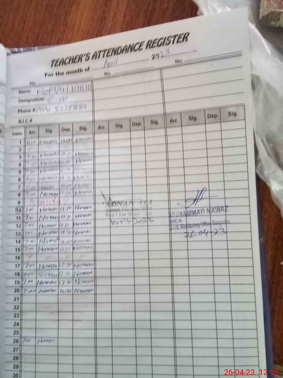 | Name: As**** Al**** Designation: (School Headmaster's/Headmistress's) PST Phone/Cell Number: 03**** |