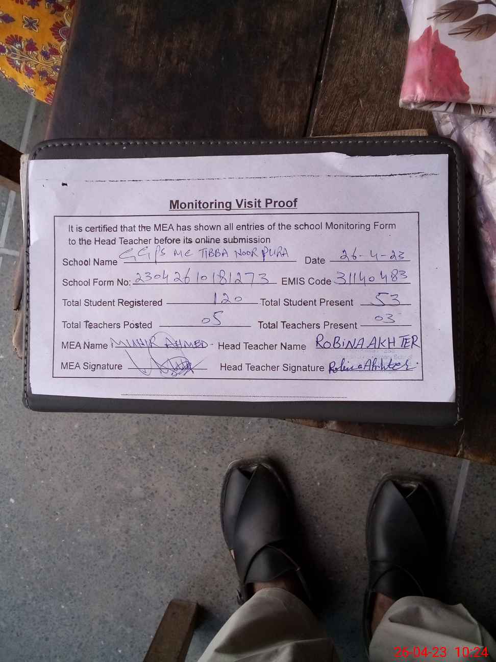| EMIS Code: 31140483 | Name of School: GGPS MC TIBBA NOOR PURA | |||