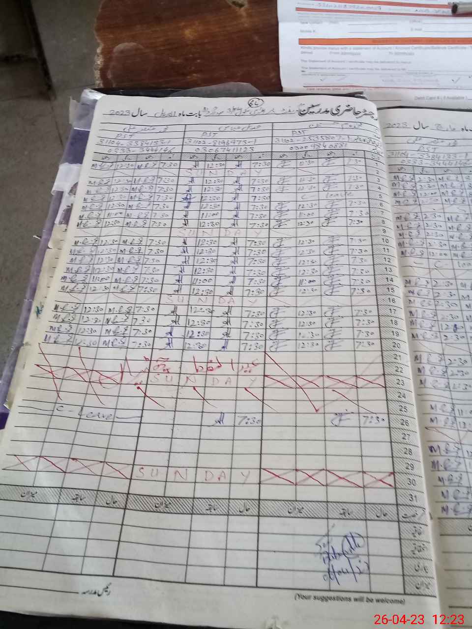 | Name: Ad**** Ab**** Designation: (School Headmaster's/Headmistress's) PSt Phone/Cell Number: 03**** |