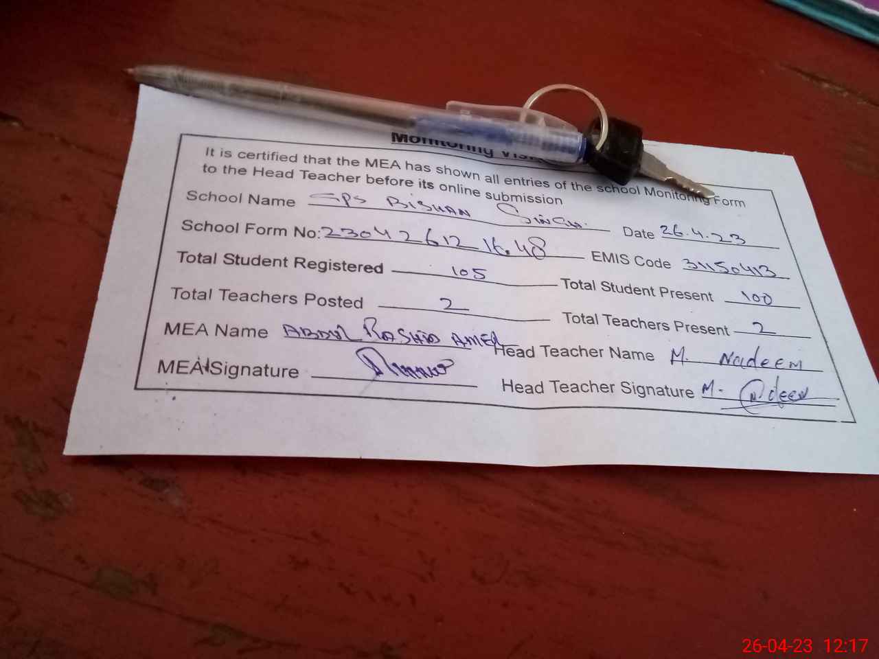 | EMIS Code: 31150413 | Name of School: GPS BISHAN SINGH | |||