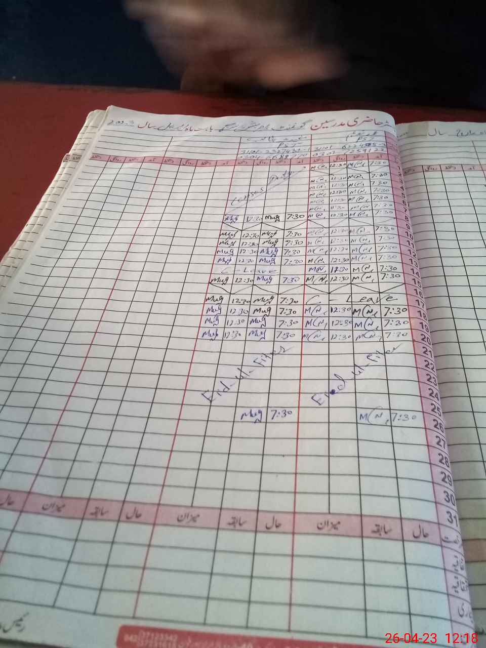 | Leave | Duty | Absent | Maternity | Medical | Ex- Pak |