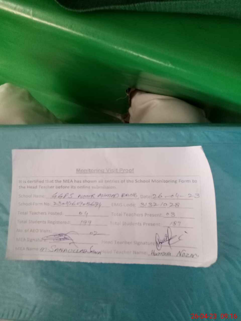 | EMIS Code: 31321028 | Name of School: GGPS NOOR AHMED BHOMB | |||