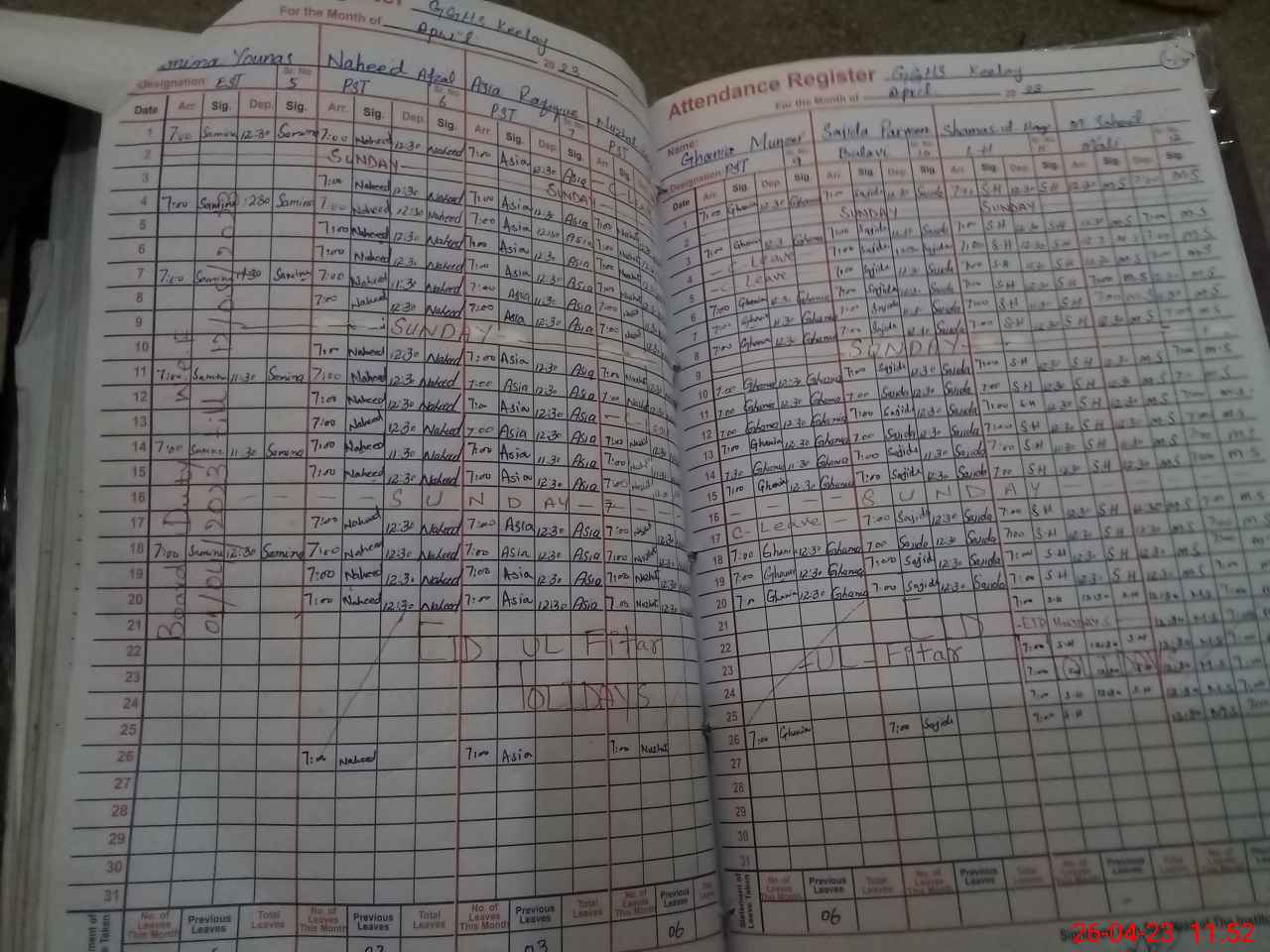 | 35**** | Sa**** Yo**** | EST | Regular | 0 | 0 | 0 | 0 | 0 | 0 | 0 | 0 | 0 | Exam Duty |