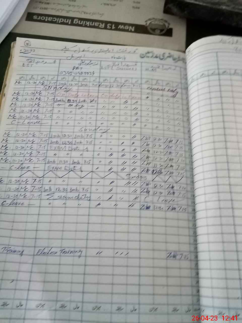 | 35**** | Sa**** Iq**** | EST | Regular | 0 | 0 | 0 | 0 | 0 | 0 | 0 | 0 | 0 | Exam Duty |