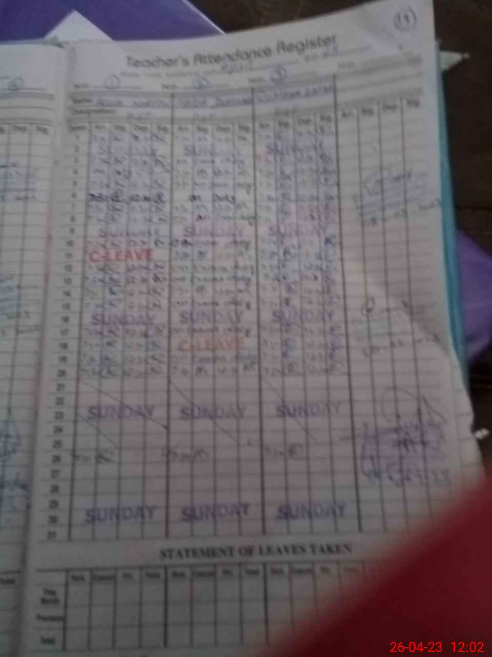 | Leave | Duty | Absent | Maternity | Medical | Ex- Pak |