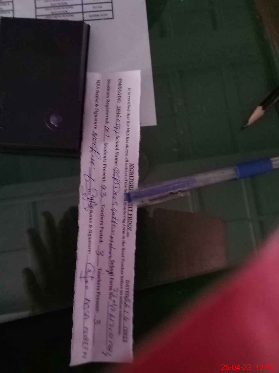 | Attendance Register | Head Teacher | MEA with School | Visit Proof |