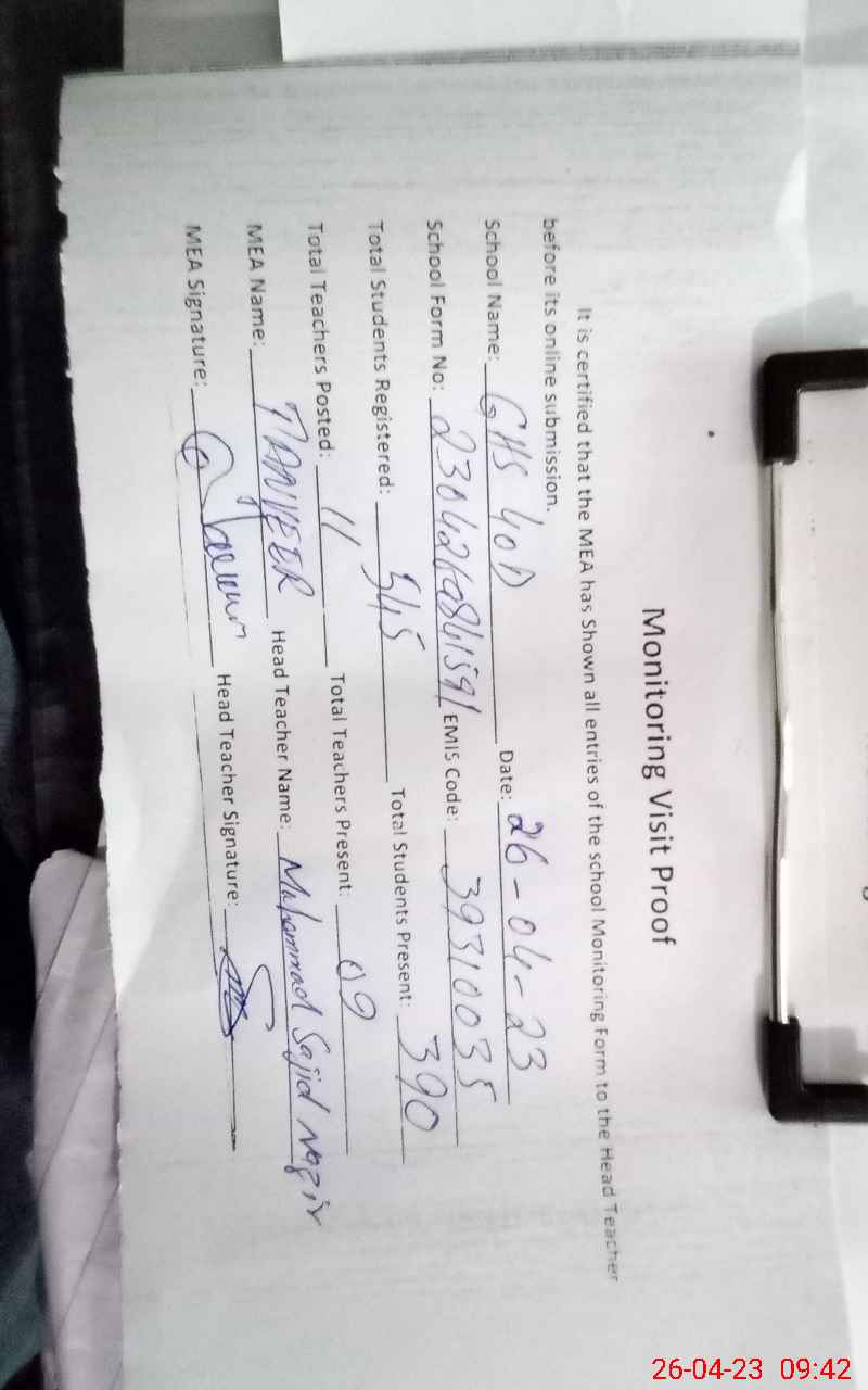 | EMIS Code: 39310035 | Name of School: GHS CHAK NO. 40-D DEPAL PUR | |||