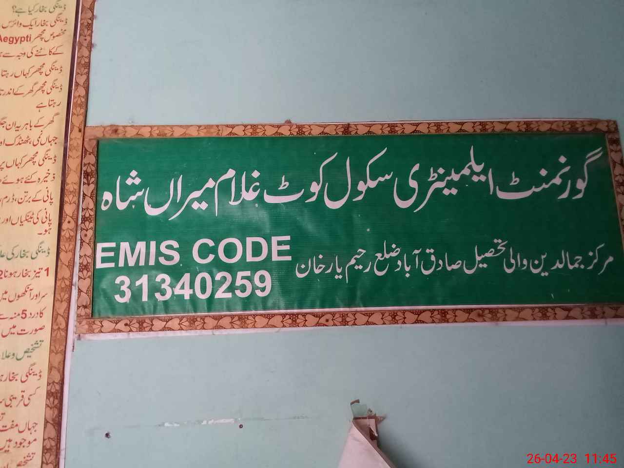 | EMIS Code: 31340259 | Name of School: GES KOT GHULAM MIRAN SHAH | |||