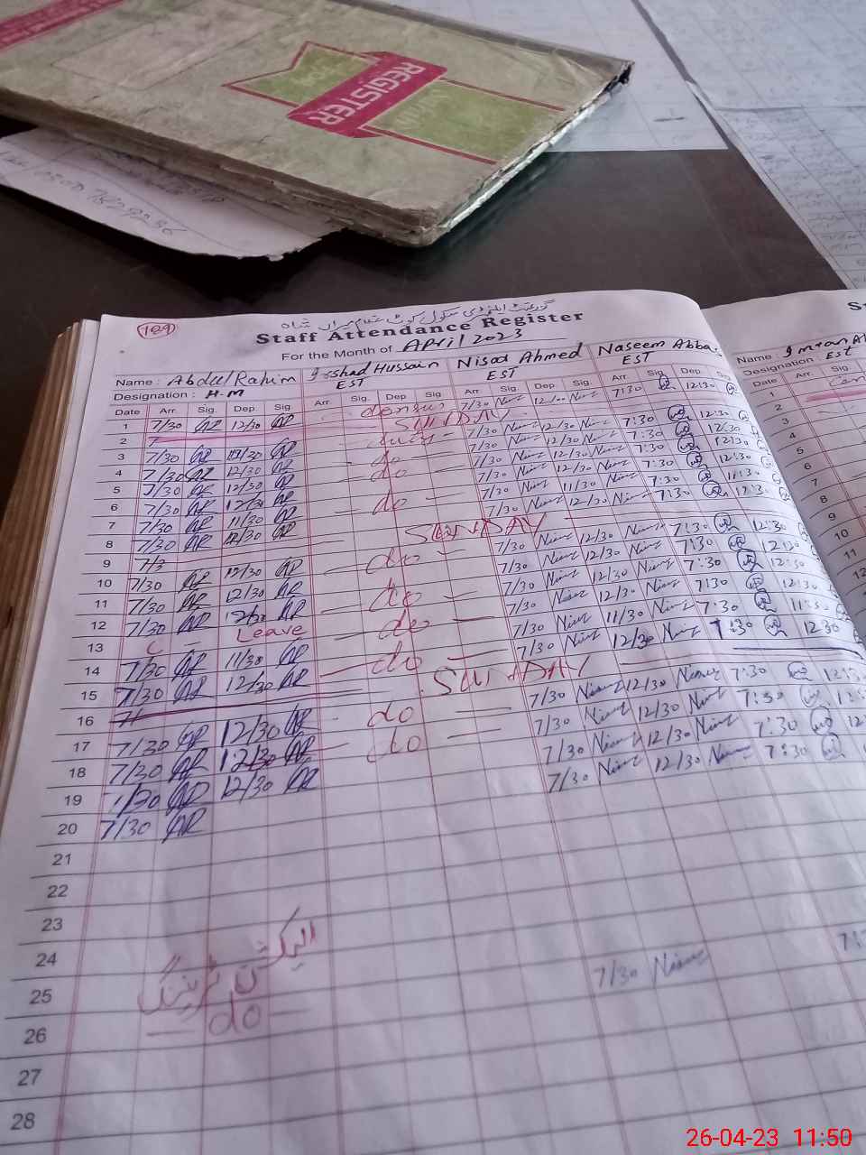 | CNIC | Full Name | Designation | R/C | Absence During Last Calender Month |