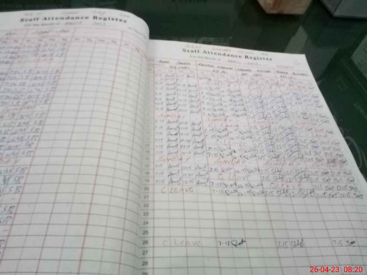| Leave | Duty | Absent | Maternity | Medical | Ex- Pak |