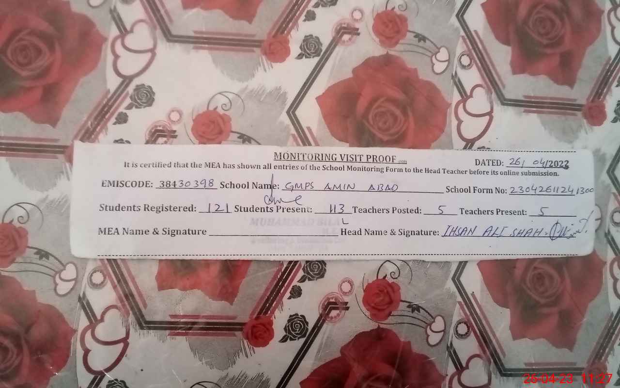 | EMIS Code: 38430398 | Name of School: GMPS AMIN ABAD | |||
