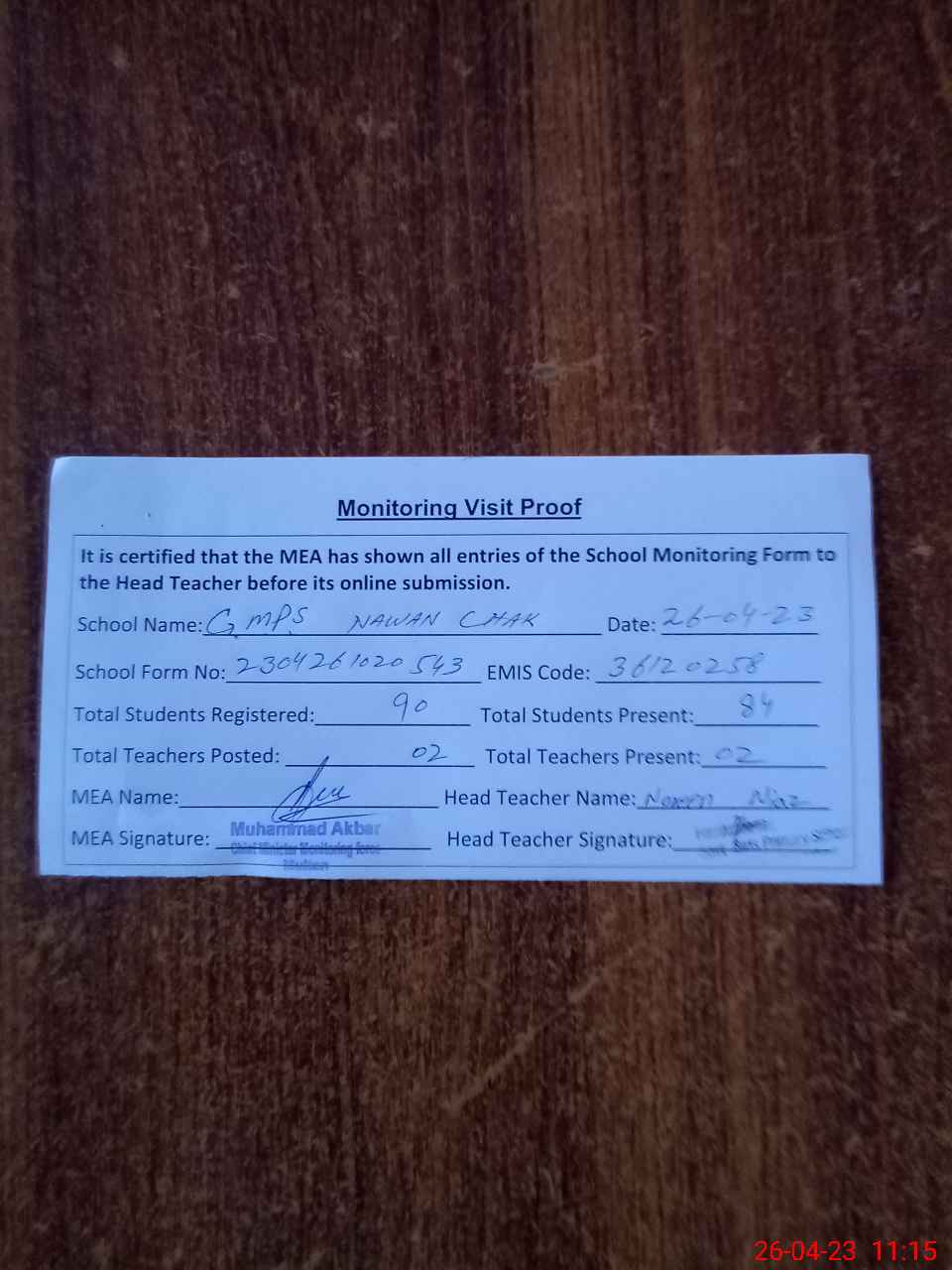 | EMIS Code: 36120258 | Name of School: GMPS NAWAN CHAK | |||