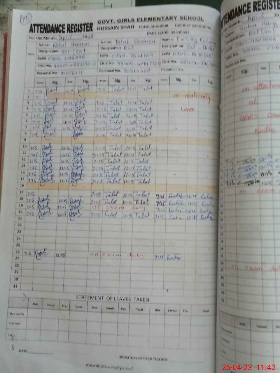 | 38**** | Pa**** Ak**** | PST | Regular | 0 | 0 | 0 | 0 | 0 | 0 | 0 | 0 | 0 | Exam Duty |