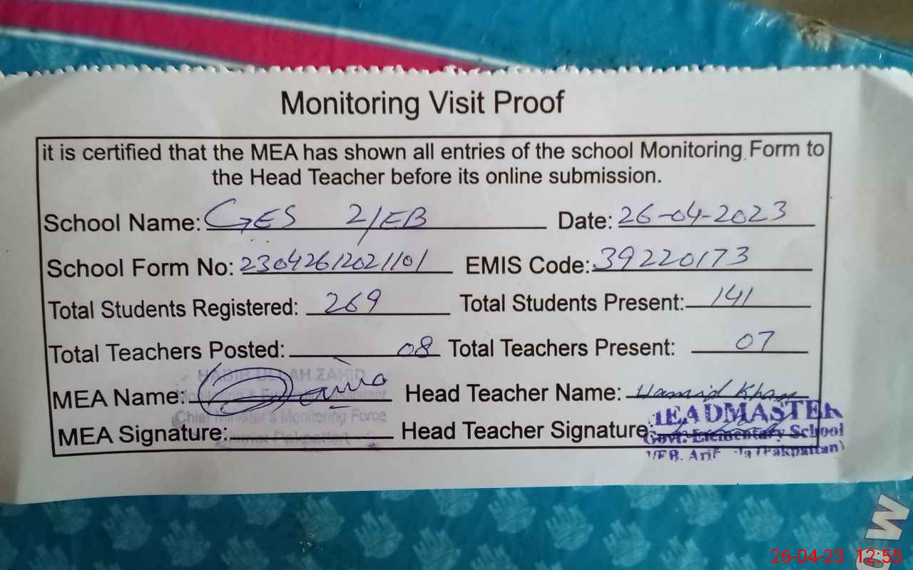 | Attendance Register | Head Teacher | MEA with School | Visit Proof |