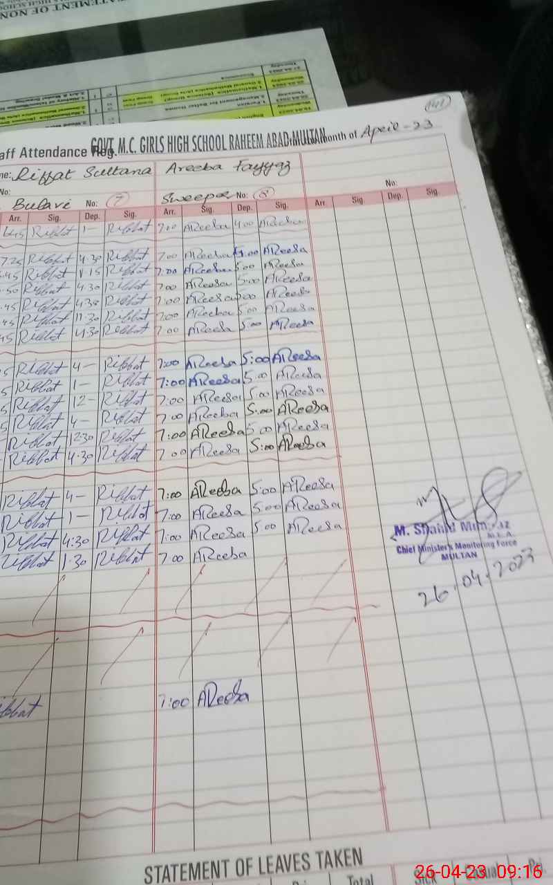 | Name: Ay**** Pa**** Designation: (School Headmaster's/Headmistress's) Headmistaress Phone/Cell Number: 03**** |