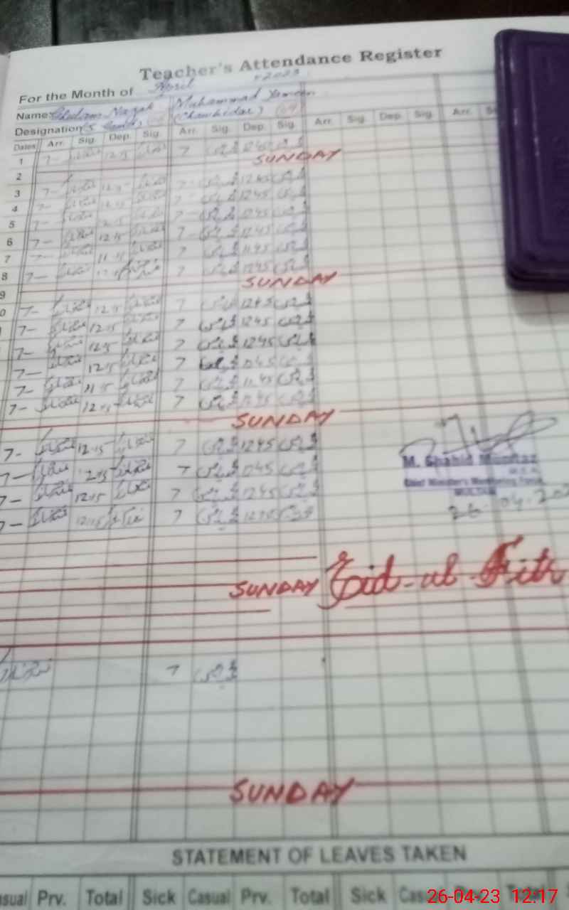 | 36**** | Ab**** Na**** | EST | Regular | 0 | 0 | 0 | 0 | 0 | 0 | 0 | 0 | 0 | Exam Duty |